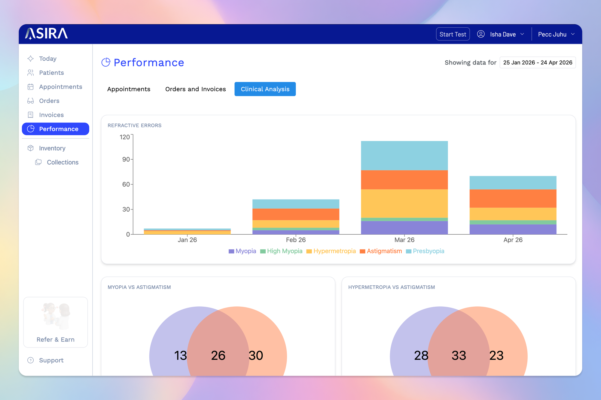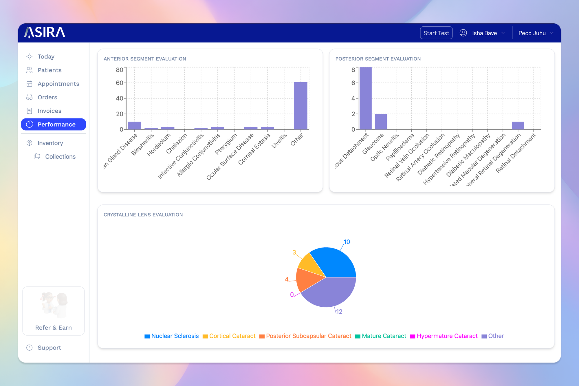 ASIRA’s new Performance section makes this process easier than ever. By summarizing appointment outcomes, billing and order trends, and clinical data on refractive errors and eye diseases, it gives practices the insight they need to improve care, reduce inefficiencies, and strengthen revenue streams.